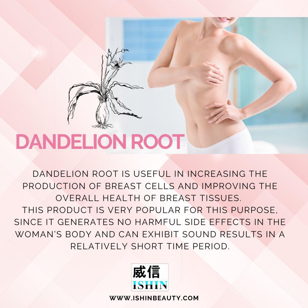 Dandelion root is useful in increasing the production of breast cells and improving the overall health of breast tissues. This product is very popular for this purpose, since it generates no harmful side effects in the woman’s body and can exhibit sound results in a relatively short time period.