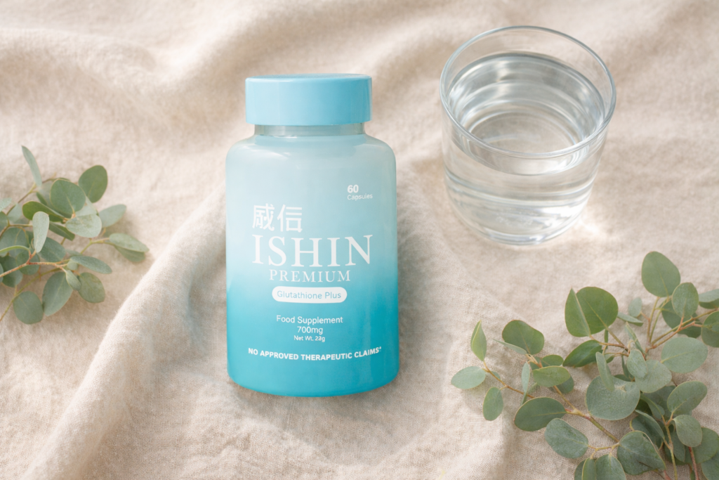 Ishin Beauty offers Japan-formulated glutathione supported by GMP, ISO, Halal, and FDA registration — designed for safe, steady glow-from-within when life stages allow.