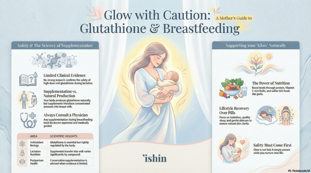 - Glutathione is naturally produced by the body, but supplement use during breastfeeding requires caution.