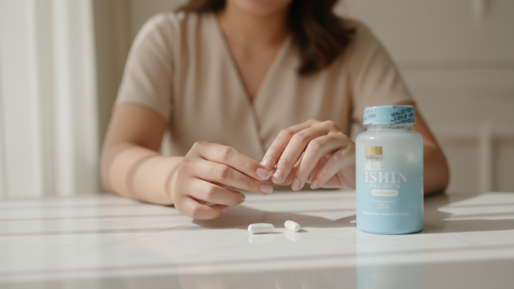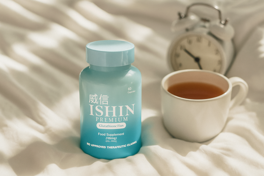 Glow safely with Ishin Premium — Japan-formulated Triple Glutathione for calm, natural brightening.